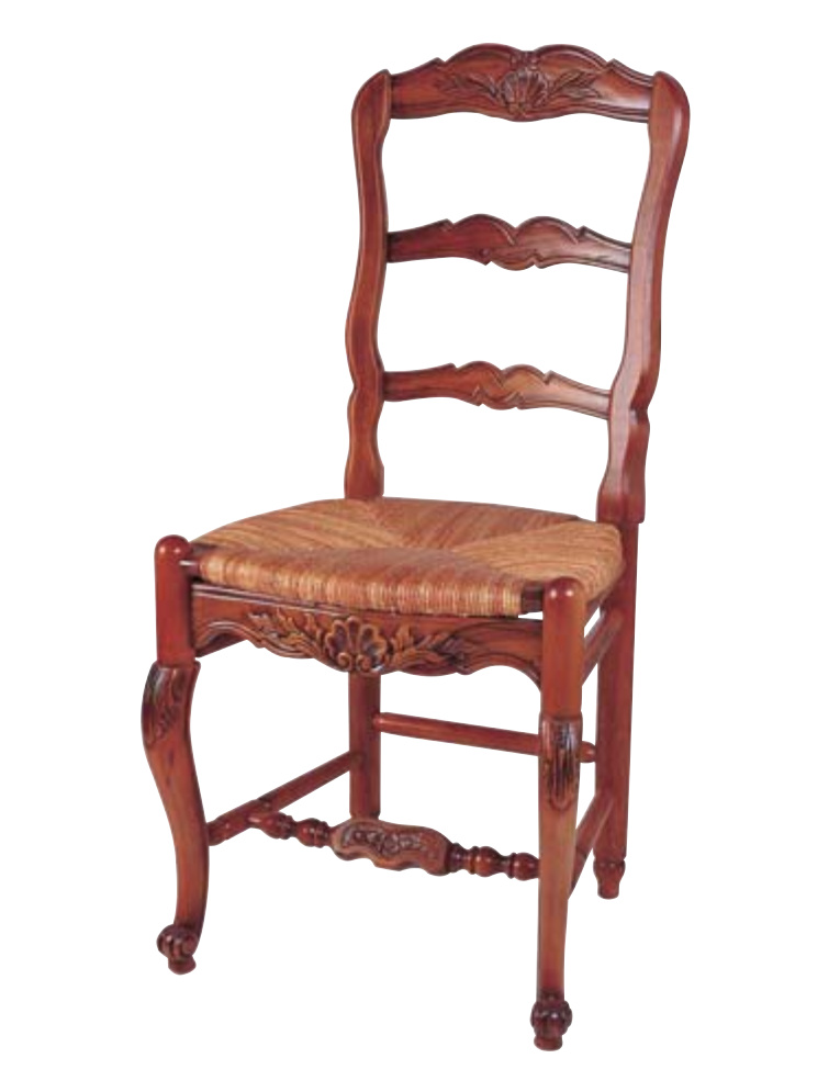 A characteristic Provençal chair, with Louis XV inspiration and hand carved shell and leaves decoration. Handwoven grass seat. Can also pair nicely with a horsehair cushion covered in a nice linen or cotton fabric. Perhaps the most charming provincial chair in existence—although, some of the other styles we can have made are also good. An armchair model is available. |