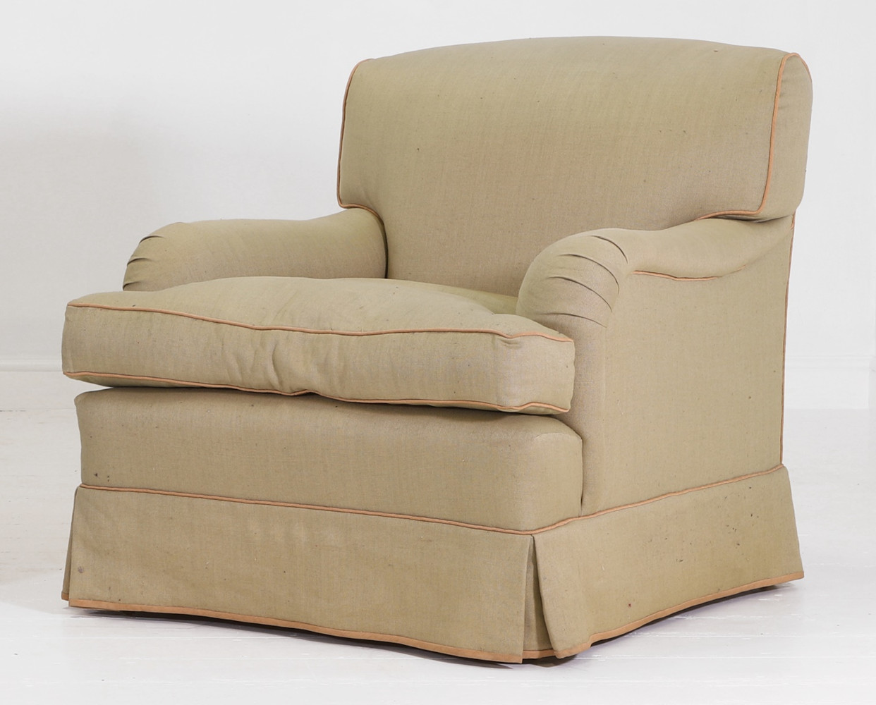 Perhaps my favorite version of one of the most classic archetypes of the club chair. Really nice with the fixed cover with skirt (as pictured) or loose cover with skirt. This also makes an excellent chair with a loose back cushion. |