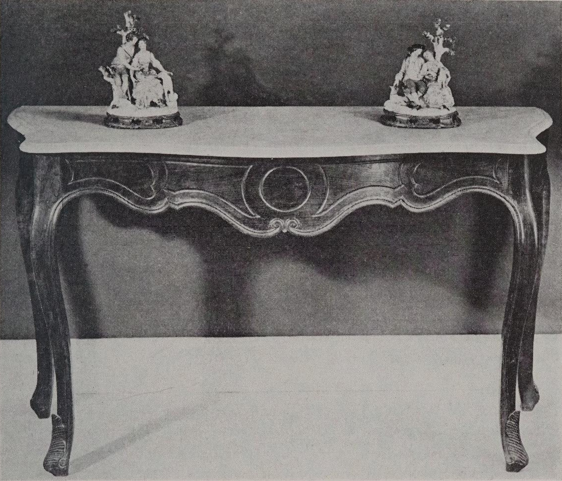 A Louis XV provincial console table with marble top and cabriole legs with leaf-carved toes. Like many of the other pieces here, what appeals to me about this piece is that it has comparatively simple decoration but excellent natural wood and strong form. This table would also be nice with a wood top. |