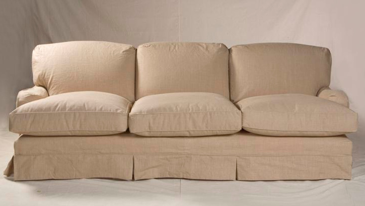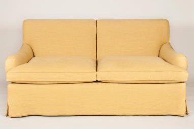 This is another nice sofa design. Shown with a fixed back cushion, it could also be made with loose back cushions. It is also very nice with a skirt on the covering. It is essentially a sofa version of the chair below. |