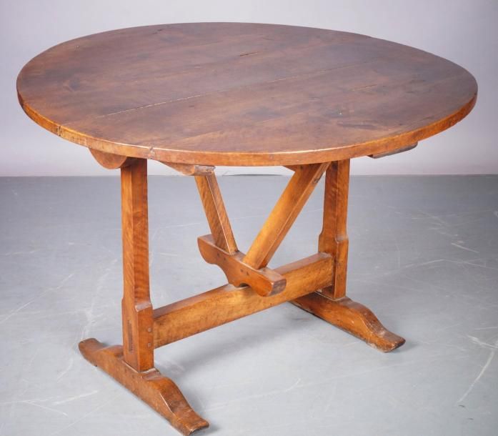 A table de vigneron, originally used for work out in the vineyard, is a also a form that can serve nicely anywhere in the house as an occasional table. There are many variations on this table, but this is one of my favorites. You can see how these probably took inspiration from earlier tilting-top tables, like the double gate model shown three below. |